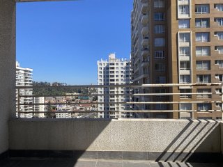 Gran potencial para Inversionista! Ubicado a 1 cuadra del metro y Hospital Gustavo Fricke, cerca del Juzgado de Garantía, Cámara Chilena de la Construcción, Mutual de Seguridad. Abundante comercio y servicios alrededor Venta de departamento ubicado en piso 16, vista norponiente. Recién pintado y con piso flotante nuevo en dormitorio. Exquisita terraza de 6 metros para disfrutar o bien extender los metros útiles. Cuenta con living comedor, dormitorio en suite con orientación norte, closet. Cocina cerrada, muebles y conexión a lavabajilla o lavadora. 1 estacionamiento 2 bodegas Gastos comunes $ 92.000.- Edificio con quincho y piscina en azotea. Conserjería las 24 hrs, gimnasio, sala de reuniones y lavandería en piso 1.