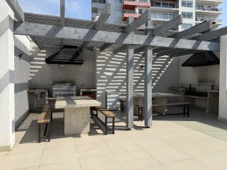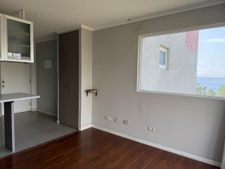 Venta de dpto a pocos minutos de los centros universitarios, locomoción colectiva a la puerta. El departamento con disposición nororiente, tiene una terraza que permite disfrutar de una linda vista a la bahía de Valparaíso. Cuenta con cocina integrada y bien equipada, living bastante cómodo. Dos dormitorios de buen porte, 1 baño con ventilación natural. Conexión para lavadora en closet de pasillo. 1 estacionamiento y 1 bodega. En general tiene muy buena luminosidad. El edificio tiene quincho en azotea con una vista preciosa al mar. Lavandería, estacionamientos para visitas y conserjería las 24 horas. Gastos comunes $ 60.000.- aprox
